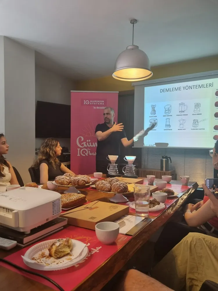 Ziyareti daha da keyifli hale getiren sürpriz kahve workshop’ıydı. Uzman bir barista ve kahve tadımı uzmanı tarafından workshop yapılarak, özel kahvelerin tadımı yapıldı ve kahve demlemeye dair bilgiler verildi. IQ Alüminyum Sistemleri, ‘Güne IQ ile başla’ projesini farklı mimarlık ofislerini de ziyaret ederek sürdürecek.