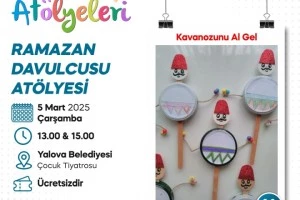 Etkinlik, Yalova Belediyesi Çocuk Tiyatrosu’nda saat 13.00 ve 15.00’te iki ayrı oturum halinde yapılacak. Atölyeye katılacak minikler, kendi Ramazan davulcularını el becerilerini kullanarak tasarlayacak. Etkinlik kapsamında çocuklar, yanlarında getirdikleri kavanoz kapaklarını kullanarak minyatür davullar oluşturacak ve onları boyayarak süsleyecek.