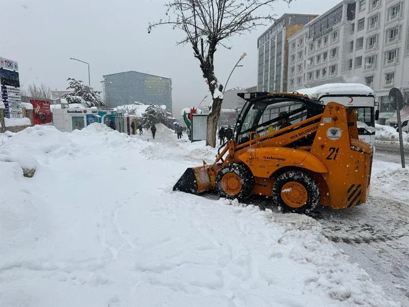 Kar yağışının yeniden etkisini gösterdiği Muş'ta, vatandaşların günlük yaşamının aksamaması için belediye ekipleri kar temizleme ve tuzlama çalışmalarını aralıksız sürdürüyor.