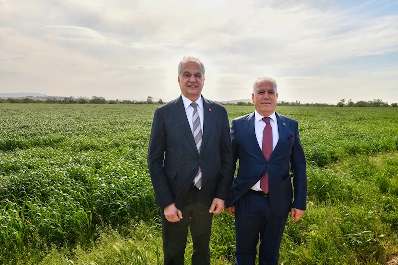 Ocak ayında ekimi yapılan Mustafakemalpaşa’nın örnek tarım projesi buğday tarlasını, Bursa Büyükşehir Belediye Başkanı Mustafa Bozbey ve Mustafakemalpaşa Belediye Başkanı Şükrü Erdem yerinde inceledi.
