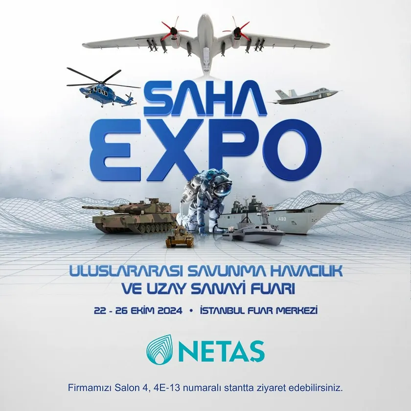 Türkiye’nin önde gelen teknoloji şirketlerinden Netaş, bu yıl ArGe alanında 50. yılını kutlarken, 22-26 Ekim tarihlerinde İstanbul Fuar Merkezi'nde düzenlenecek olan SAHA EXPO Uluslararası Savunma, Havacılık ve Uzay Sanayii Fuarı'nda yerli ve milli ürünlerini sergileyecek.