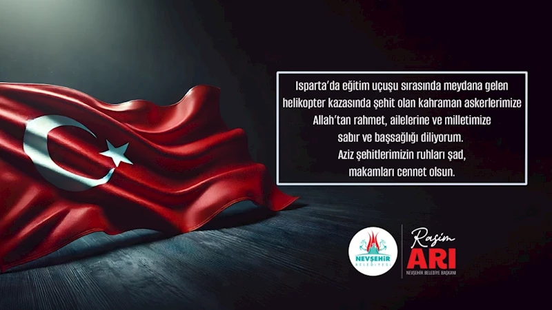 Nevşehir Belediye Başkanı Rasim Arı, Isparta’da meydana gelen helikopter kazası sonrası şehit olan askerlerimize taziye mesajı yayınladı.