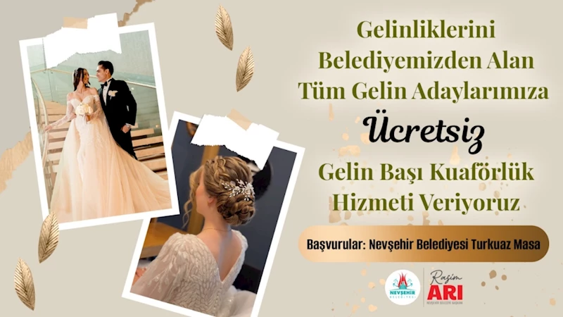 Nevşehir Belediyesi Gençlik ve Spor Hizmetleri Müdürlüğü tarafından 70. Yılda 70 Etkinlikleri kapsamında başlatılan bu hizmet sayesinde; Nevşehir merkez sınırları içerisinde gelinliklerini Belediyeden alan bütün gelin adaylarına ÜCRETSİZ gelin başı kuaförlük hizmeti verileceği bildirildi.
