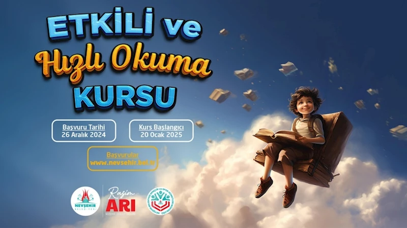 Nevşehir Belediyesi Gençlik ve Spor Hizmetleri Müdürlüğü tarafından “Etkili ve Hızlı Okuma” kursu açılacak.