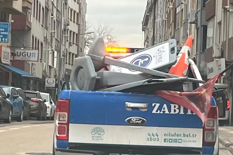 Nilüfer Belediyesi ekipleri; Esentepe ve Karaman mahalleleri ile Beşevler ve Yıldırım caddeleri üzerinde yaya geçişini engelleyen ve görüntü kirliliği oluşturan duba, tabela ve reklam materyallerini topladı.