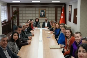 Diyarbakır'daki Newroz kutlamasına katılmak üzere kente gelen Nükleer Savaşı Önleme için Uluslararası Hekimler Birliği (International Physicians for the Prevention of Nuclear War- IPPNW) üyeleri, Büyükşehir Belediyesi Eş Başkanları Serra Bucak ve Doğan Hatun'u ziyaret etti. Ziyarette Eş Başkanların yanı sıra Sur Belediyesi Eş Başkanları Fatma Gulan Önkol ve Adnan Örhan , Bağlar Belediyesi Eş Başkanları Leyla Ayaz ve Siraç Çelik, Kayapınar Belediyesi Eş Başkanları Berivan Gülşen Sincar ve Cengiz Dündar, Sağlık ve Sosyal Hizmet Emekçileri Sendikası (SES) üyeleri yer aldı.