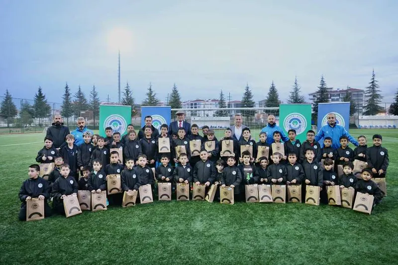 Hasan Doğan Spor Tesisleri'nde futbol antrenmanına katılan Başkan Kurt, 43 minik sporcuya krampon hediye etti ve sporu yaşam kültürü haline getirme sözü verdi.