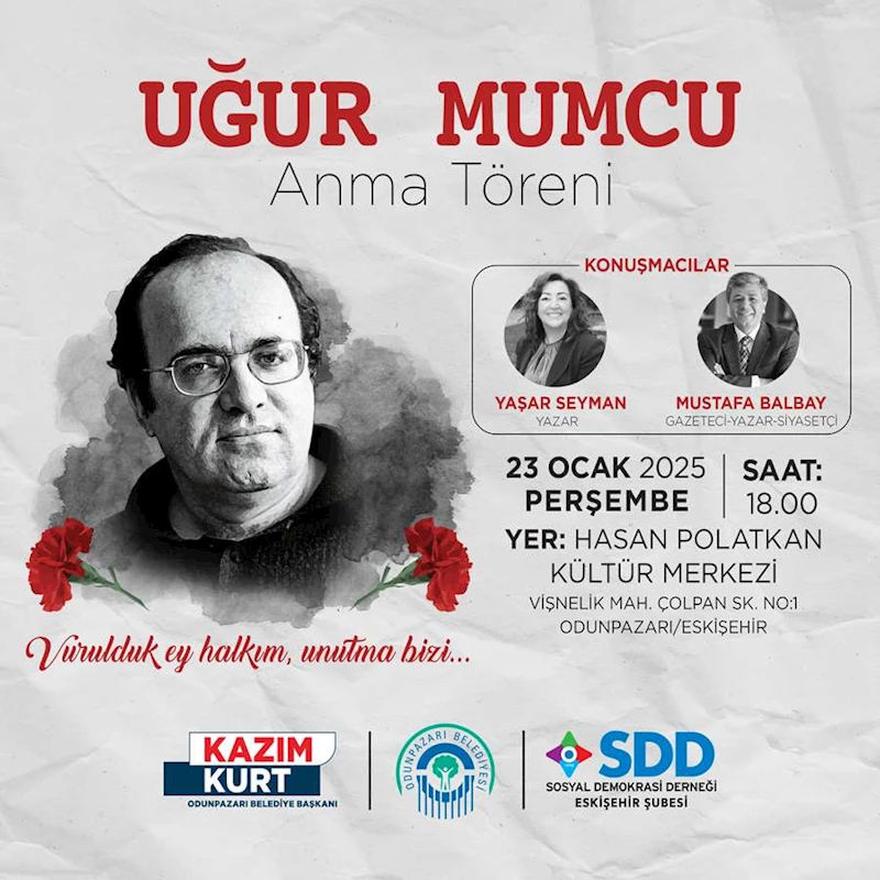 23 Ocak 2025 Perşembe günü saat 18.00’de Hasan Polatkan Kültür Merkezi’nde Anma etkinliklerinin ilki, 23 Ocak 2025 Perşembe günü saat 18.00’de Hasan Polatkan Kültür Merkezi’nde gerçekleştirilecek. Sosyal Demokrasi Derneği (SDD) Eskişehir Şubesi iş birliği ile gerçekleşecek olan bu etkinlikte, Mumcu’nun yaşamı, gazetecilik kariyeri ve demokrasi uğruna verdiği mücadeleler üzerine konuşmalar yapılacak. Programda yazar Yaşar Seyman ve gazeteci-yazar-siyasetçi Mustafa Balbay konuşmacı olarak yer alacak. Seyman ve Balbay, Mumcu’nun fikirlerini, gazetecilik ilkelerini ve bıraktığı mirası katılımcılarla paylaşacak.