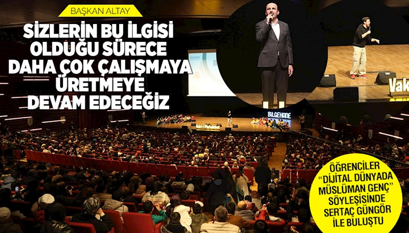 Söyleşiye gösterilen yoğun ilgi ve öğrencilerin sevgi dolu karşılaması dolayısıyla çok mutlu olduğunu ifade eden Başkan Altay, “Hem bu salonda hem de diğer salonda bizleri izleyen değerli çocuklarımıza ve ailelerine selam ediyorum. Sizin bu yoğun katılımınız bizi cesaretlendiriyor. Demek ki Konya’mızın daha büyük salonlara ihtiyacı var” dedi.