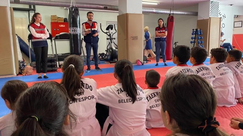 Kayseri İl Jandarma Komutanlığı ekiplerince Taekwondo öğrencilerine ’Jandarma mesleği ve Güvenli İnternet Kullanımı’ eğitimi verildi.