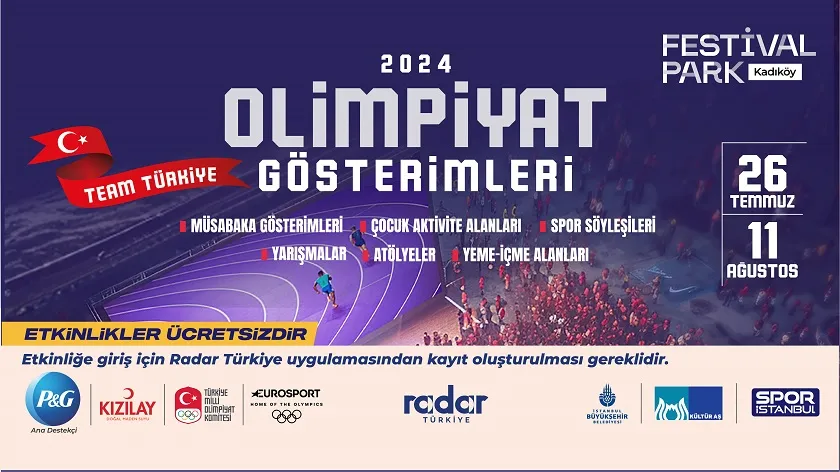 İstanbul Büyükşehir Belediyesi (İBB) Kültür AŞ, Spor İstanbul ve Türkiye Milli Olimpiyat Komitesi’nin iş birliğiyle Festival Park Kadıköy'de kurulacak olan 2024 Olimpiyat Gösterimleri alanı, canlı yayınlar ve çeşitli etkinliklerle sporseverleri ağırlayacak. 26 Temmuz-11 Ağustos tarihleri arasında gerçekleşecek etkinlikler, sporseverlere unutulmaz anlar yaşatacak. Olimpiyat heyecanını Festival Park’da yaşamak isteyenler Radar Türkiye üzerinden kayıt yaptırabilecek.