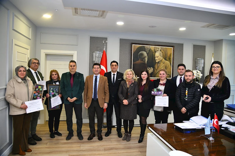 Başkan Kaya, yarışmada dereceye giren Muhtarlık İşleri Müdürü Hakan Altın, Mali Hizmetler Müdürü Hüseyin Keleş, Yazı İşleri Müdürü Emre Kurt ile birim müdürlerindeki sıfır atık temsilcilerine teşekkür ederek, İklim Değişikliği ve Sıfır Atık Müdürlüğü’nün geri dönüştürülen atıklardan hazırladığı çeşitli tablolar ile teşekkür belgeleri verdi.