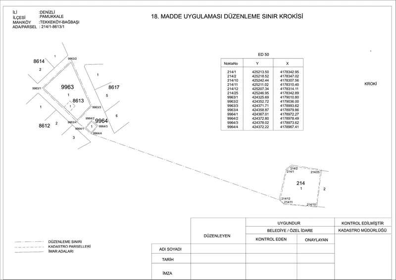 Pamukkale İlçesi'ne bağlı Bağbaşı Mahallesi 8613 ada 1 ve Tekkeköy Mahallesi 214 ada 1 numaralı parselleri kapsayan alanda bir arsa ve arazi düzenlemesi gerçekleştirilecek. Söz konusu düzenleme, ilgili yönetmelik hükümlerine uygun olarak Pamukkale Belediyesi Encümeni'nin 26 Kasım 2025 tarihli kararı ile kabul edildi. Daha sonra, 5216 sayılı Büyükşehir Belediyesi Kanunu gereğince Denizli Büyükşehir Belediyesi Encümeni'nin 11 Aralık 2025 tarihli kararı ile onaylandı.