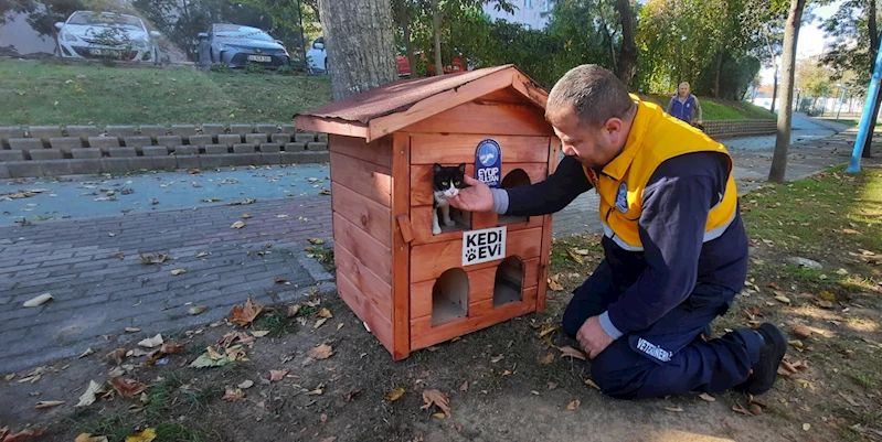 Eyüpsultan Belediyesi Veteriner İşleri Müdürlüğü ekipleri havaların soğumaya başladığı şu günlerde ilçedeki sokak hayvanlarının yaşam koşullarını iyileştirmek ve daha güvenli ortamlarda yaşamalarını sağlamak için parklara yeni kedi evleri yerleştirmeye başladı.