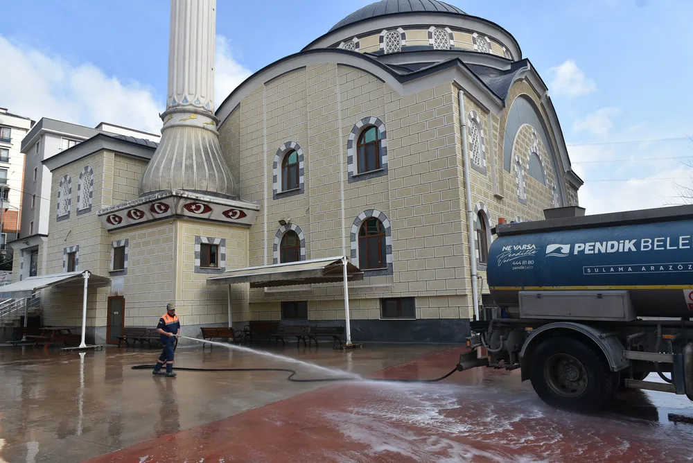 Pendik Belediyesi, Ramazan Bayramı öncesinde ilçe genelindeki camilerde detaylı bir temizlik çalışması gerçekleştirdi. Vatandaşların ibadetlerini hijyenik koşullarda yerine getirebilmeleri amacıyla yürütülen çalışmalar kapsamında camilerin iç ve dış mekanları baştan sona temizlendi.