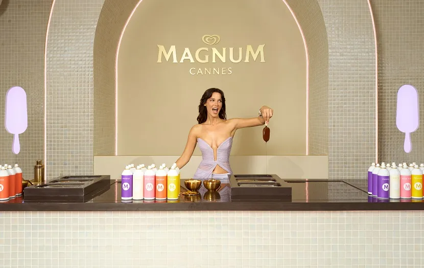Pınar Deniz bu yolculukta, Magnum Chill’in görsel dünyasını yansıtan, tasarımcı Eda Güngör’ün Museum Of Fine Clothing imzalı kıyafetiyle, La Croissette Plajı’nda bulunan Magnum Dipping Bar’da kendi Magnum’unu tasarladı.