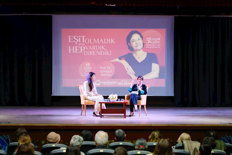 Konferansta konuşan Prof. Dr. Fatmagül Berktay, Türkiye’de kadın haklarının temel taşı olarak kabul edilen ve kadın hareketinin en önemli kazanımlarından biri olan Türk Medeni Kanunu’nun 17 Şubat 1926’da kabul edilmesi ile başlayan süreci ele aldı. Kadın hareketinin tarihsel gelişimini, Manisa kadın hareketinin öncülerinden olan anneannesi Melek Gökmen ve annesi Sevim Tanör’ü de anarak anlattı. Berktay, kadın hakları konusunda gelinen nokta ve karşılaşılan güncel sorunlar hakkında bilgiler vererek, katılımcıları tartışmaya dahil etti. Konferansın sonunda, dinleyiciler de kendi görüşlerini aktararak etkinliğe katkı sağladı.