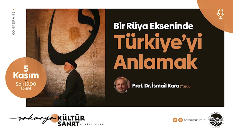 Sakarya Büyükşehir Belediyesi Kültür ve Sosyal İşler Dairesi Başkanlığı tarafından sürdürülen Kasım Kültür Sanat Etkinlikleri ‘Bir Rüya Ekseninde Türkiye’yi Anlamak’ isimli konferansla devam edecek.