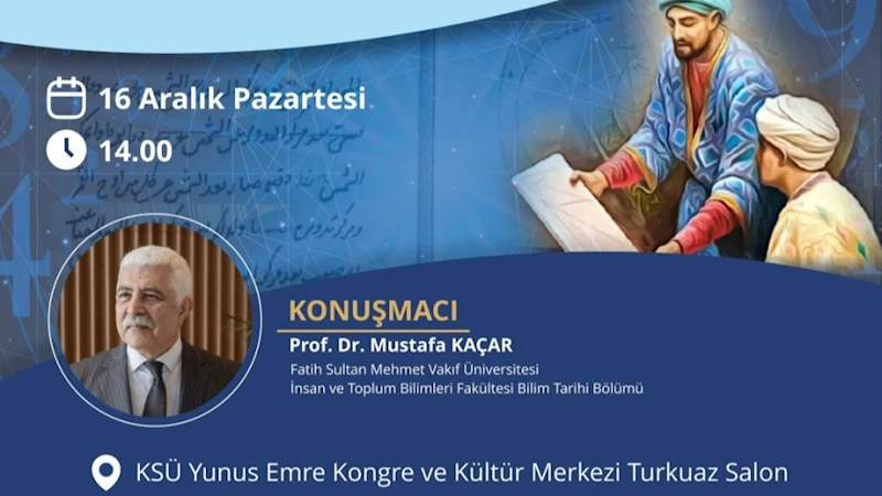Büyükşehir Belediyesi ve KSÜ iş birliğiyle 16 Aralık Pazartesi günü gerçekleştirilecek konferansta Prof. Dr. Mustafa Kaçar, Türk - İslam dünyasının önemli bilim insanlarından biri olan Ali Kuşçu’nun hayatı, eserleri ve bilim dünyasına katkılarını farklı perspektiften ele alacak.