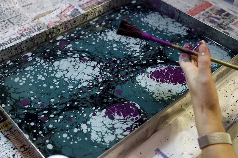 Zorlu ve emek isteyen bir geleneksel sanat olan ebru derslerinde kursiyerler, geleneksel değerlerle geleceği birleştiren benzersiz bağın bir parçası oluyor.