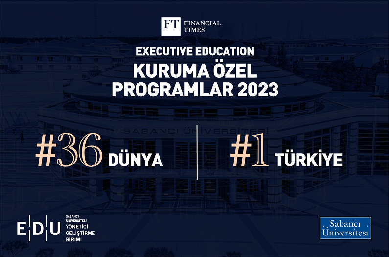 Sabancı Üniversitesi Yönetici Geliştirme Birimi EDU, Financial Times Kuruma Özel Programlar 2023 dünya sıralamasında, 2018’den bu yana toplam 42 basamak yükselerek, 36’ıncı sıraya yerleşti. Oxford, London Business School gibi itibarlı eğitim kurumların sıralandığı listede Türkiye’de, geçtiğimiz yıllarda olduğu gibi bu yıl da 1. sırada olan EDU; dünyadaki gelişmeleri izleyerek, yenilikçi öğrenme araçlarıyla tasarladığı programlarıyla iş dünyasına katkıda bulunmayı sürdürüyor.