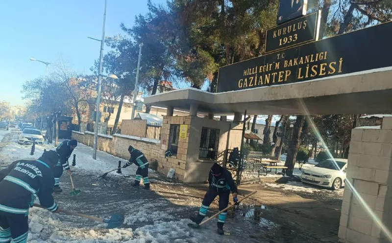 Yoğun kar yağışının ardından Şahinbey Belediyesi ekipleri, ilçedeki tüm okul çevrelerinde ve ana güzergâhlarda temizlik çalışması yaparak pazartesi başlayacak eğitim öğretim faaliyetleri için yolları güvenli hale getirdi.