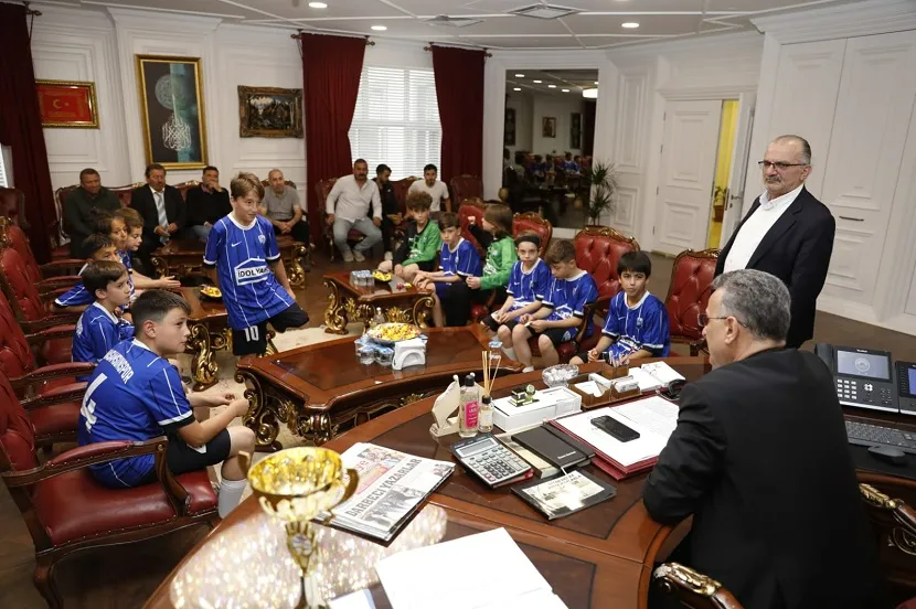 SAMSUN-19 Mayıs Ankara Gençlik Turnuvası'nda Şampiyon olan Karasamsun Spor U-11 takımı, Şampiyonluk kupasını İlkadım Belediye Başkanı İhsan Kurnaz’a takdim etti.