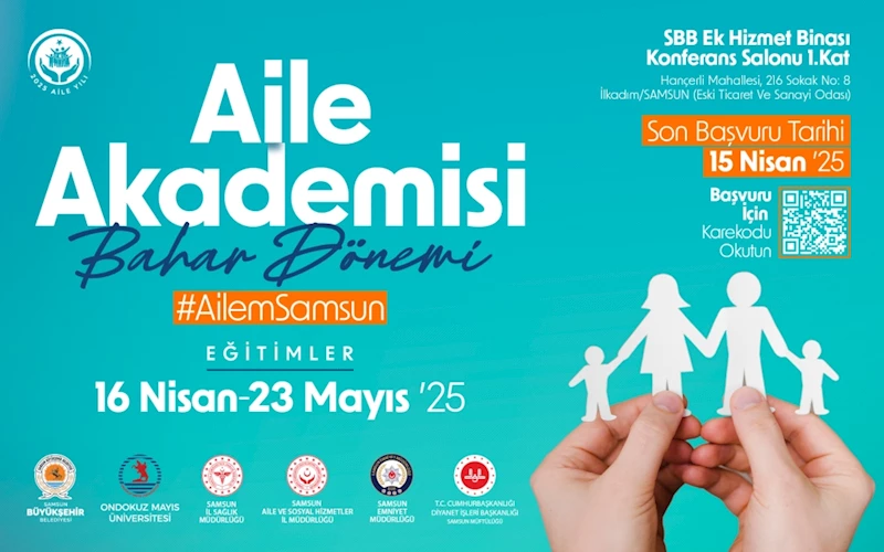 Aile kurumuna verdiği önemle dikkat çeken Samsun Büyükşehir Belediyesi tarafından Aile Akademisi bahar dönemi programı düzenleniyor. Eğitim programı; Samsun Büyükşehir Belediyesi, Ondokuz Mayıs Üniversitesi, Samsun İl Sağlık Müdürlüğü, Samsun Aile ve Sosyal Hizmetler İl Müdürlüğü, Samsun Emniyet Müdürlüğü ve Samsun Müftülüğü iş birliğinde düzenleniyor. Kurumlar arası güçlü iş birliğiyle hayata geçirilen bu eğitim serisi, aile yapısının korunmasına yönelik önemli katkılar sunmayı hedefliyor.