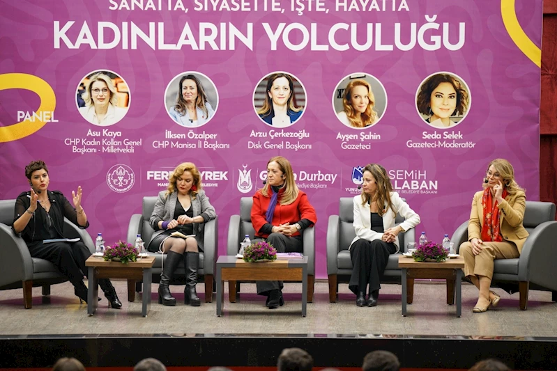 CHP Kadın Kolları Genel Başkanı Asu Kaya, CHP Manisa İl Başkanı İlksen Özalper, Disk Genel Başkanı Arzu Çerkezoğlu, Gazeteci Ayşen Şahin ile aynı zamanda panelin moderatörlüğünü üstlenen Gazeteci Seda Selek'in katıldığı 'Sanatta, Siyasette, İşte, Hayatta Kadınların Yolculuğu' paneli, yoğun ilgi gördü.