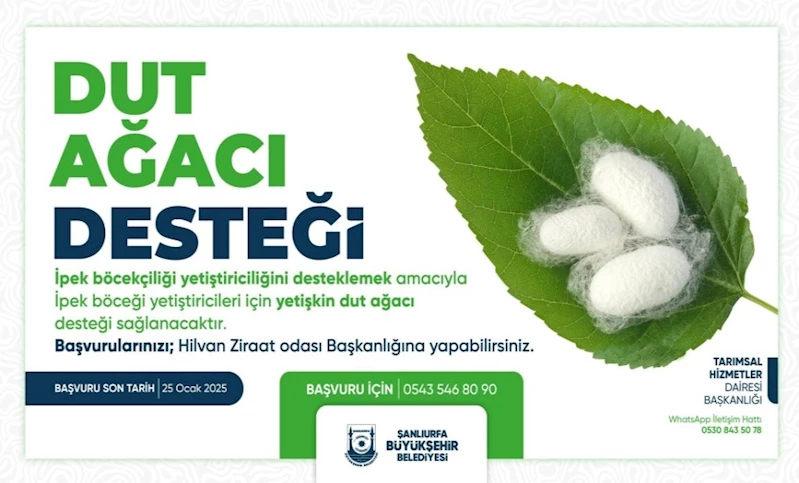 İpek böceği yetiştiriciliği, Şanlıurfa’nın kırsal kesimlerinde önemli bir ekonomik faaliyet olarak öne çıkarken, Şanlıurfa Büyükşehir Belediyesi Tarımsal Hizmetler Daire Başkanlığı bu projeyle üreticilere yeni bir destek sağlayacak. 25 Ocak’a kadar başvuruların alınacağı hibe programı, Hilvan Ziraat Odası Başkanlığı tarafından tespit edilecek çiftçilere yönelik olacak.