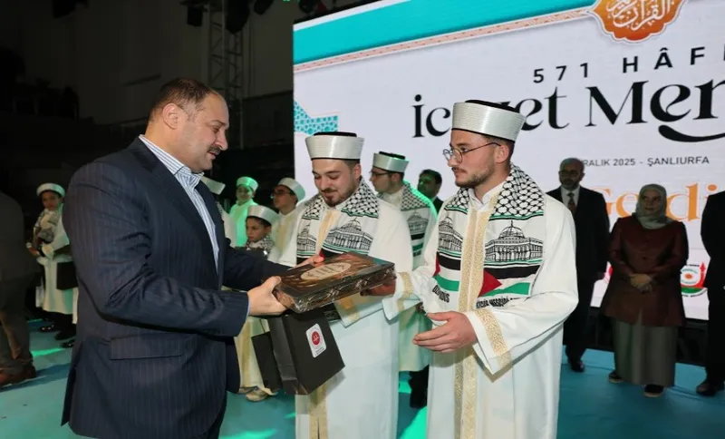 Şanlıurfa'da düzenlenen programla hafızlık eğitimini tamamlayan 571 öğrenci icazet aldı. Törene vali, belediye başkanı ve Diyanet İşleri Başkanlığı temsilcisi katıldı.