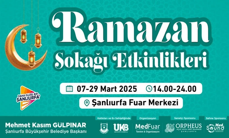 Şanlıurfa Fuar Merkezi’nde 07-29 Mart tarihleri arasında gerçekleştirilecek olan Ramazan Sokağı etkinlikleri, her gün 14.00 ile 24.00 saatleri arasında ziyaretçilerini ağırlayacak.