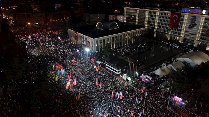 İstanbullular, kapısına yüzlerce polis dayanarak, şafak operasyonuyla hukuksuz bir biçimde evinden gözaltına alınan seçilmiş TBB ve İBB Başkanı Ekrem İmamoğlu’na, yüzbinlerce insanın katılımıyla bir kez daha sahip çıktı. Saraçhane’yi mahşeri bir kalabalıkla dolduran vatandaşlar, İmamoğlu’na desteklerini sloganlar, şarkılar, alkışlar ve cep telefonu ışıklarıyla gösterdi. CHP Genel Başkanı Özgür Özel, Memleket Partisi Genel Başkanı Muharrem İnce ve Ankara Büyükşehir Belediye Başkanı Mansur Yavaş meydanı hınca hınç dolduran yüzbinlere seslendi.
