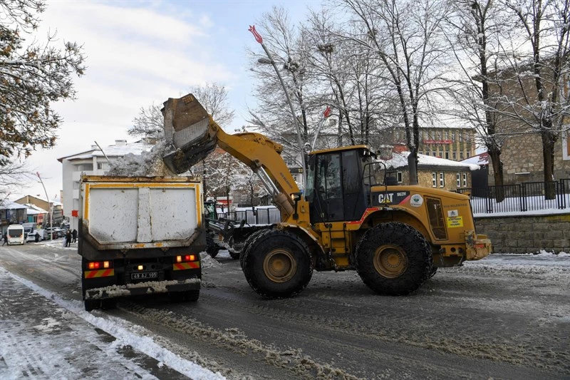 Muş Belediyesi ekipleri etkisini gösteren kar yağışının ardından 7/24 aralıksız çalışmalarına devam ediyor. Şehir merkezinde biriken karlar, iş makinaları tarafından toplanarak, şehir merkezi dışına taşınıyor.