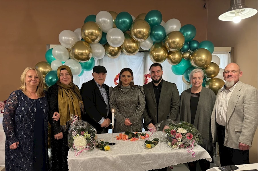 Söz kesmeye gelemeyenler ve Serah ile Ahmet Ensar’ın arkadaşları ve yakın aile dostların tanışıp kaynaşmaları için bir salon kiralandı. Gelin ve damat adayı ve arkadaşları tarafından masalar ve duvarlar süslendi. Davetliler için hazırlanan yemek ve türk tatlıları ikram edildi.Salonda Serah ın anne annesi bayan Evelyn, annesi Daniela, babası Frank ve komşuları ile Ahmet Ensar ın Annesi Meral, babası Mustafa,ağabeyi Alperen ve kardeşi Abdul Samet doğan,Dayısı Murat-Orhan Dost,dayı oğlu Berk,Teyzesi Nuray ve eşi Kemalettin,Teyze oğulları Görkem ve Kaan Karadeniz’in yanı sıra Ahmet Ensar’ın halası Ayşe, hala kızı Betül ve teyzesinin beyi Cemal Çiftçi ve çok sayıda Türk ve Alman davetli hazır bulundu ve söz yüzükleri takılan gençleri tebrik etti mutluluklar dilediler…