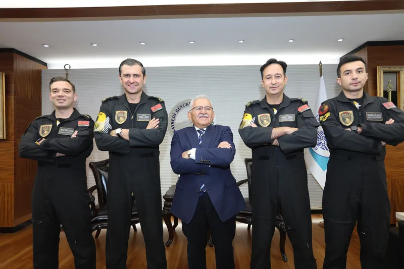 Kayseri Büyükşehir Belediye Başkanı Dr. Memduh Büyükkılıç, Türk Hava Kuvvetleri'nin SOLOTÜRK ekibinden 1. Pilot Yarbay Murat Bakıcı ve Garnizon Komutanı Hava Pilot Tuğgeneral Hasan Volkan Güleryüz'ü makamında ağırladı.