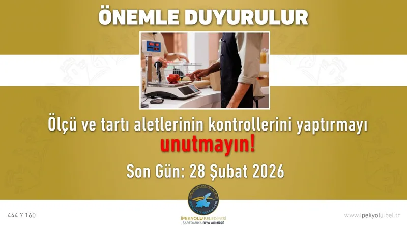 İpekyolu Belediyesi Zabıta Müdürlüğü Ölçü ve Ayar Birimi , esnafın kullanmış olduğu ölçü ve tartı aletlerinin iki yılda bir yapılan periyodik muayene ve damgalama için bildirim verme işlemlerinin başladığını duyurdu.