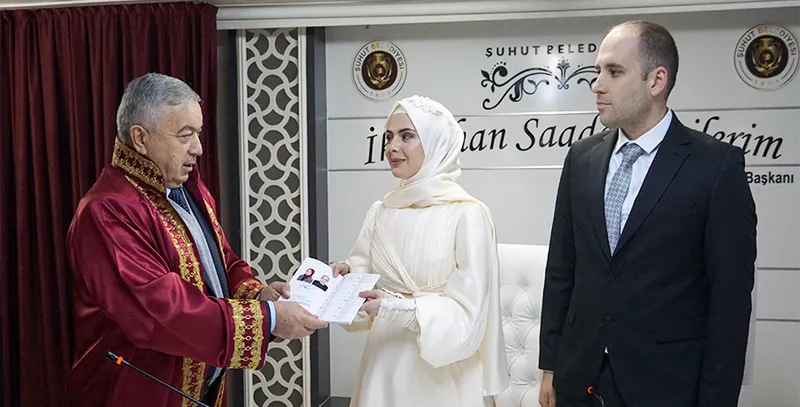 Şuhut Belediye Başkanı Muhittin Özaşkın, 2026 yılının ilk nikah akdini gerçekleştirdi. Mehmet ile Hava Daldal çiftinin kızı Makbule Daldal ile Recep ve Fatma Aktepe çiftinin oğlu Ramazan Aktepe, düzenlenen törenle dünya evine girdi.
