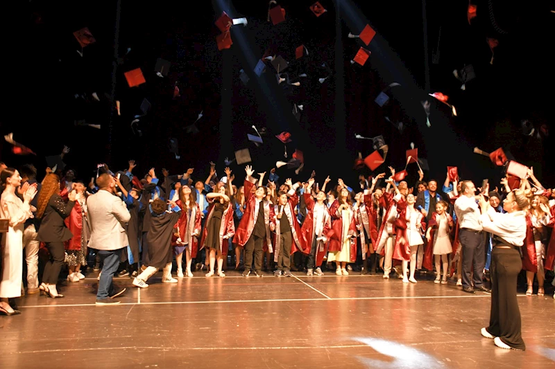 Gecenin sonunda mezun öğrenciler, sahnede geleneksel kep atma töreniyle mezuniyet coşkusunu doyasıya yaşadılar.