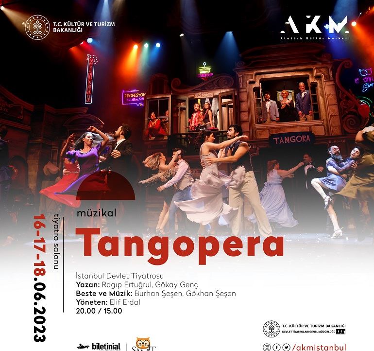 Atatürk Kültür Merkezi, 16-17-18 Haziran tarihlerinde hem görsel hem işitsel bir şölen olan Tangopera müzikaline ev sahipliği yapıyor. İstanbul Devlet Tiyatrosu’nun sahneleyeceği müzikal, Beyoğlu’ndaki eski bir handa dostluk, vefa ve bağlılık üzerine eşsiz bir hikâye sunuyor. Ragıp Ertuğrul ve Gökay Genç’in kaleme aldığı müzikali Elif Erdal yönetiyor. Müziklerine Burhan ve Gökhan Şeşen kardeşlerin imza attığı gösterinin dekor ve kostüm tasarımı Şirin Dağtekin Yenen’e, ışık tasarımı Akın Yılmaz’a, koreografisi Filiz Dursunoğlu’na, dramaturjisi ise Günay Ertekin’e ait.