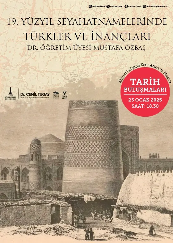 İzmir Büyükşehir Belediyesi Kent Arşivi ve Müzeler Şube Müdürlüğü’nün, Tarih Vakfı ile birlikte APİKAM’da gerçekleştirdiği "Tarih Buluşmaları" kapsamında her ay bir akademisyen siyasetten kültüre, sanattan toplumsal olaylara birçok farklı konuda İzmirlilerle buluşmaya devam ediyor. Söyleşi dizisinin bu ayki konuğu ise Dokuz Eylül Üniversitesi Buca Eğitim Fakültesi Türkçe ve Sosyal Bilimler Eğitimi Bölümü Öğretim Üyesi Dr. Mustafa Özbaş olacak. Özbaş’ın "19. Yüzyıl Seyahatnamelerinde Türkler ve İnançları" adlı söyleşisi, 23 Ocak Perşembe günü saat 18.30’da düzenlenecek. Söyleşide; İngiliz seyyahların 19. yüzyılda yayımlanan seyahatnamelerinde aktardığı bilgiler ışığında, Türklerin söz konusu dönem ve coğrafyalardaki kültürel özellikleri ve inançları kapsamlı bir şekilde ele alınacak.
