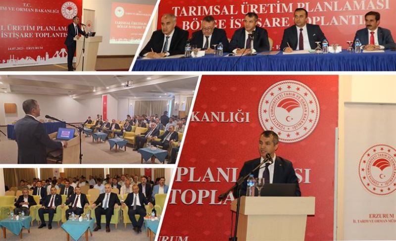 Tarımsal üretim planlanması kapsamında istişarelerde bulunmak ve hazırlanan "Tarımsal Üretim Planlanması Hakkında Yönetmelik" taslağını değerlendirmek üzere Erzurum ilinde 14.07.2023 tarihinde Ağrı, Ardahan, Bingöl, Erzincan, Iğdır, Kars, Muş ve Tunceli İl Müdürleri ve bölge illerinde tarımsal alanda faaliyet gösteren sivil toplum kuruluşları temsilcilerinin katılımı ile ilk toplantı gerçekleştirildi.