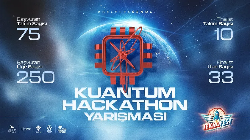 TEKNOFEST kapsamında bu yıl ilk kez başvuruya açılan Kuantum Hackathon Yarışması’na 45 farklı ilden 75 takım 250 yarışmacı tarafından başvuru alındı. 24-25 Ağustos tarihlerinde gerçekleşen final sürecine 4 farklı ilden 10 Takım 33 yarışmacı hak kazandı.