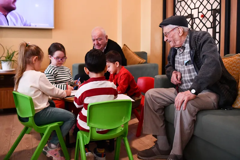 Çocuklar ve Metin Özöğüt Yaşam Merkezi sakinleri birlikte resimler yaparak keyifli anlar paylaştı. Ortaya çıkan resimler, merkezin lobi alanına asılarak hem günü ölümsüzleştirdi hem de kuşaklar arası dayanışmanın örneğini sergiledi.