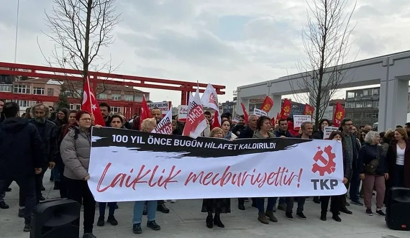 TKP İstanbul İl Örgütü, halifeliğin kaldırılmasının yüzüncü yıldönümü vesilesiyle bugün Bakırköy Meydan'da bugün saat 12.00'de bir eylem düzenledi.