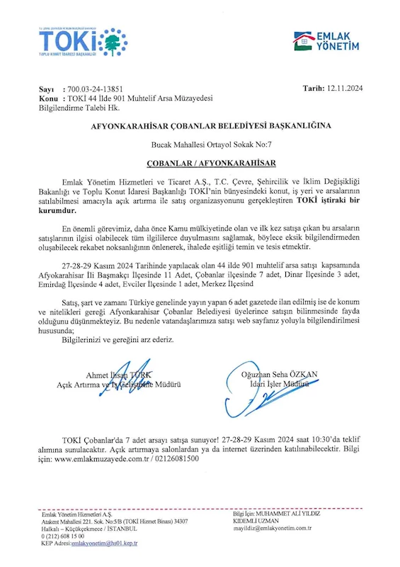 TOKİ tarafından 7 Adet Arsa Satış İlanı