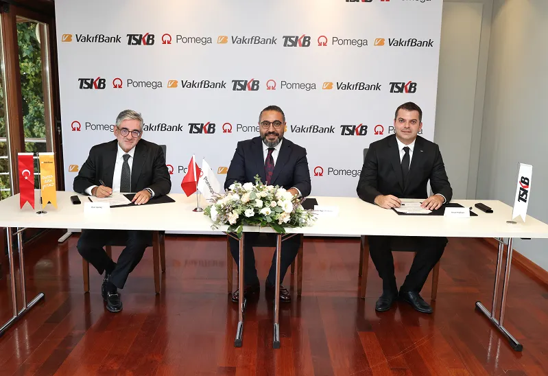 Kredinin imza töreni, TSKB Genel Müdür Yardımcısı Hasan Hepkaya, VakıfBank Kurumsal Krediler Başkanı İlhan Alpdağ ve Pomega Yönetim Kurulu Başkanı Sami Aslanhan’ın katılımlarıyla gerçekleşti. Törende, TSKB ve VakıfBank’ın yarı yarıya sağladığı kredi desteğiyle devreye alınacak ‘LIFEPO4’ pil hücresi üretim fabrikasının güvenli ve çevre dostu teknolojisiyle sektörde bir ilk olma özelliği taşıdığına da dikkat çekildi.