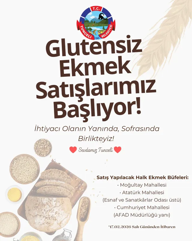 Tunceli Belediyesi, çölyak hastaları ve gluten hassasiyeti olan vatandaşlar için glutensiz ekmeği maliyet fiyatına satışa sundu.
