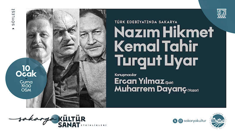10 Ocak Cuma günü Ofis Sanat Merkezi’nde gerçekleştirilecek “Türk Edebiyatında Sakarya” isimli panelde, Türk Edebiyat tarihine damga vurmuş usta isimler Nazım Hikmet, Kemal Tahir ve Turgut Uyar ile eserleri konuşulacak.