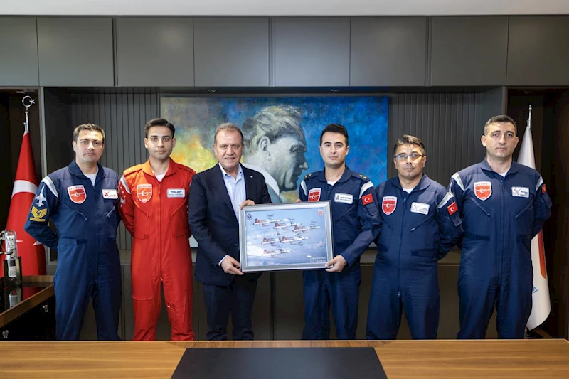 Mersin Büyükşehir Belediyesi Kültür ve Sosyal İşler Dairesi Başkanlığı tarafından 23 Nisan Ulusal Egemenlik ve Çocuk Bayramı’nın 105. yıl dönümü kutlama programı kapsamında gerçekleştirilen bir dizi etkinlik için kentte gösteri gerçekleştirerek, Mersin semalarında birbirinden güzel koreografiye imza atacak olan Türk Hava Kuvvetleri’nin akrobasi timi Türk Yıldızları, Mersin Büyükşehir Belediye Başkanı Vahap Seçer’i ziyaret etti.